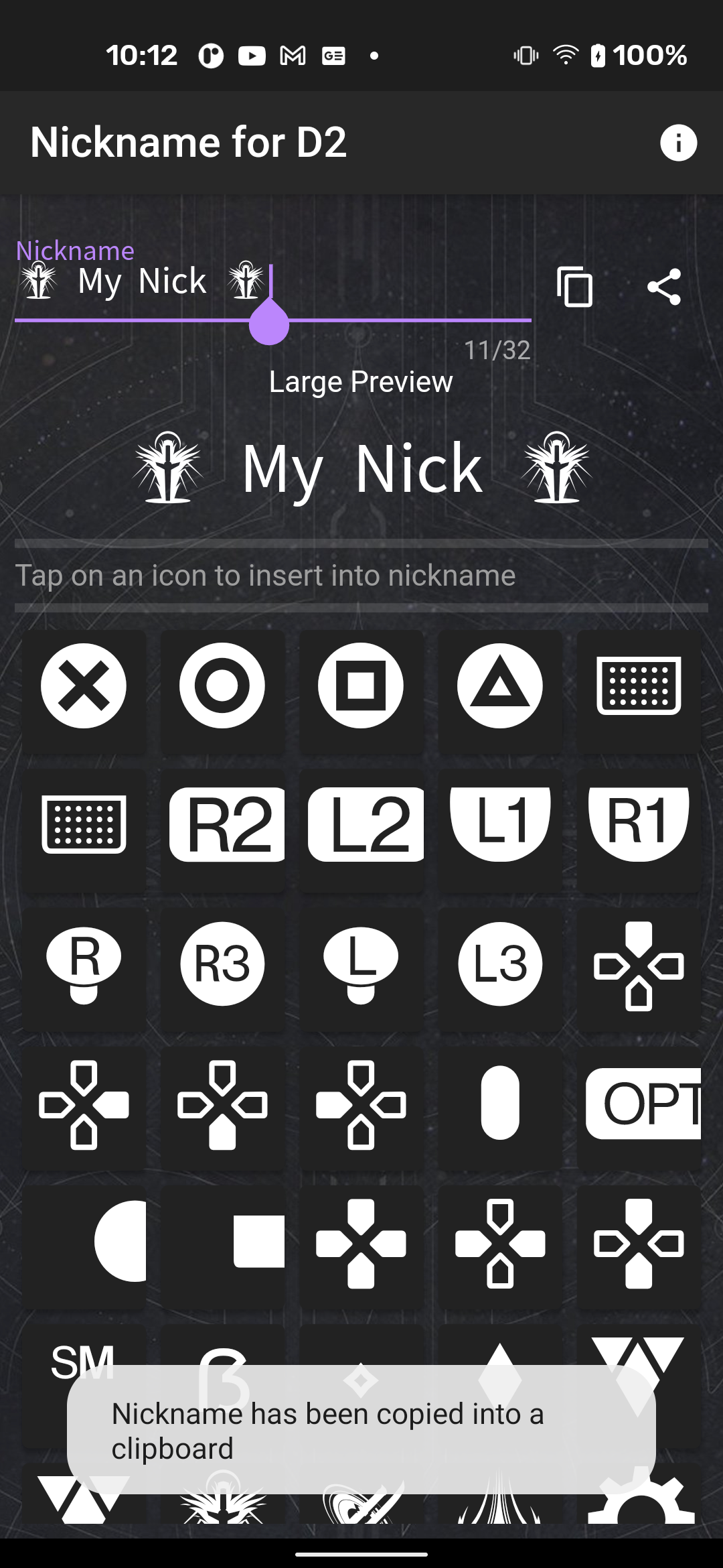 This application can help you to create unique nickname for Destiny 2. Use your imagination to be unique!